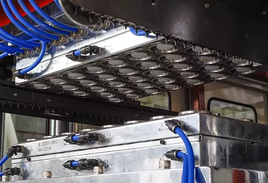 Động cơ servo kéo dài của YASKAWA (Nhật Bản) điều khiển tốc độ của khuôn trên và khuôn dưới, điều này có thể duy trì độ bền đồng đều để đảm bảo rằng độ dày đáy của mỗi cốc là đồng nhất. Và ser