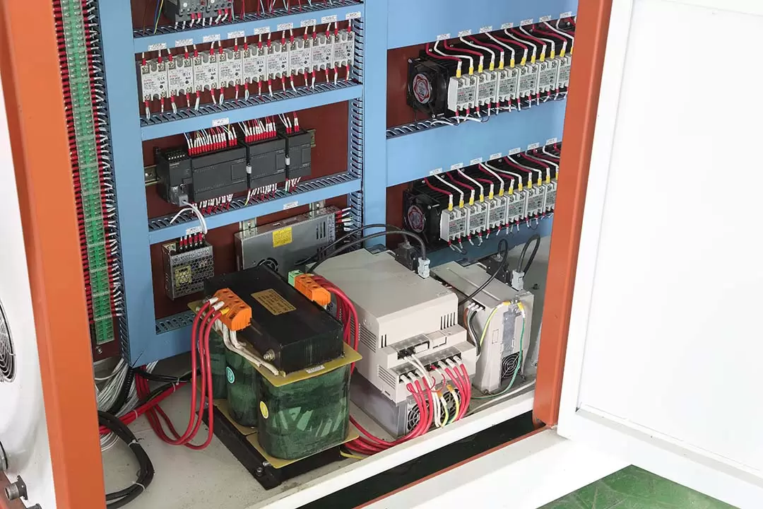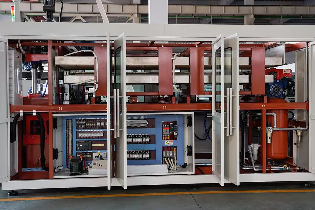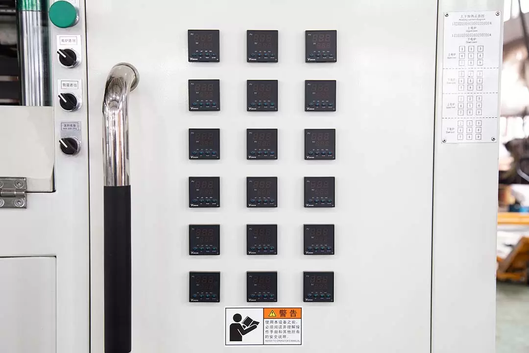Hệ thống kiểm soát nhiệt độ: Sử dụng bộ điều khiển lập trình PLC tiên tiến, có thể điều chỉnh và theo dõi chính xác nhiệt độ gia nhiệt để đảm bảo tấm nhựa gia nhiệt đồng đều, do đó đảm bảo chất lượng ổn định của thành phẩm.