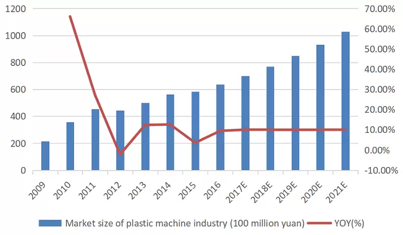 Từ khi sản phẩm đầu tiên được sản xuất trong ngành sản xuất máy móc nhựa của nước tôi vào những năm 1950, sau gần nửa thế kỷ phát triển nhanh chóng, đặc biệt là kể từ khi cải cách và mở cửa, hiện đã hoàn thiện một loạt các sản phẩm và các chỉ tiêu kinh tế kỹ thuật chính của nó đã tiếp cận hoặc đạt đến trình độ tiên tiến quốc tế. Nó có một hệ thống công nghiệp hoàn chỉnh với quốc tế hóa, chuyên môn hóa sản xuất dần dần và sản xuất quy mô tương đối lớn. Các sản phẩm về cơ bản đáp ứng nhu cầu của thị trường trong nước và khả năng kiếm ngoại tệ thông qua xuất khẩu được cải thiện nhanh chóng.