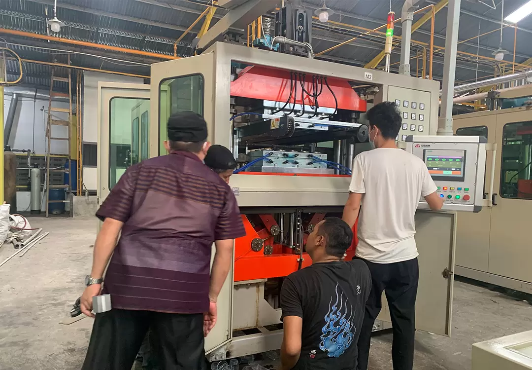 Vào đầu tháng 8 năm 2023, nhóm của chúng tôi đã đến Indonesia để thăm những khách hàng cũ. Lần này nhóm của chúng tôi đã đến nhà máy của khách hàng và đưa kỹ sư vận hành thiết bị đi cùng. Mục đích đầu tiên là tìm đại lý cho máy ép nhiệt nhựa, và mục đích thứ hai là duy trì những khách hàng cũ ở Indonesia một lần nữa. Điều chỉnh và bảo trì thiết bị của khách hàng, và giải quyết những lỗi và vấn đề thường gặp trong sản xuất hàng ngày cho khách hàng. Khách hàng nồng nhiệt chào đón nhóm của chúng tôi đến thămnhà máy. Khách hàng này đã mua hai máy làm cốc nhựa TQC-650B và hai máy đùn tấm nhựa PP PS TJ-750D từ công ty chúng tôi vào năm 2021! công ty chúng tôi vào năm 2021!
