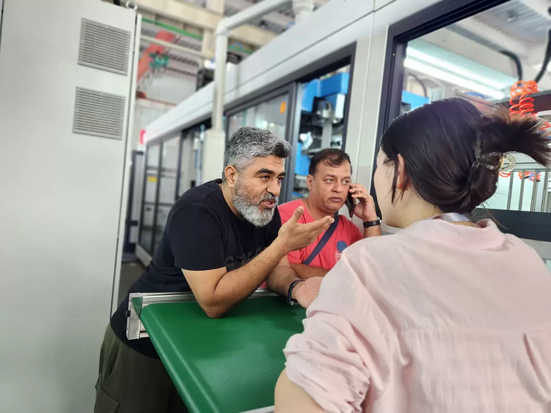 Ngày 21 tháng 8 năm 2023, khách hàng Ấn Độ của chúng tôi đã đến nhà máy để học. Vì khách hàng lo lắng rằng sẽ khó xin thị thực cho kỹ sư vận hành từ Trung Quốc sang Ấn Độ nên khách hàng đã chủ động đến nhà máy của chúng tôi để tìm hiểu kiến thức về thiết bị để có thể sản xuất và vận chuyển sớm nhất có thể. Chúng tôi cũng xin cảm ơn sự hỗ trợ của khách hàng Với sự thấu hiểu và hỗ trợ, khách hàng đã mua một máy ép nhiệt nhựa ba trạm tự động TTF-700A và 11 bộ khuôn tại công ty chúng tôi, được sử dụng để sản xuất hộp đựng thức ăn mang đi 8 ngăn và hộp đựng thức ăn mang đi 3 ngăn bằng vật liệu PP và hộp nhựa PET có độ sâu khác nhau. Chủ yếu được sử dụng để đóng gói salad trái cây.